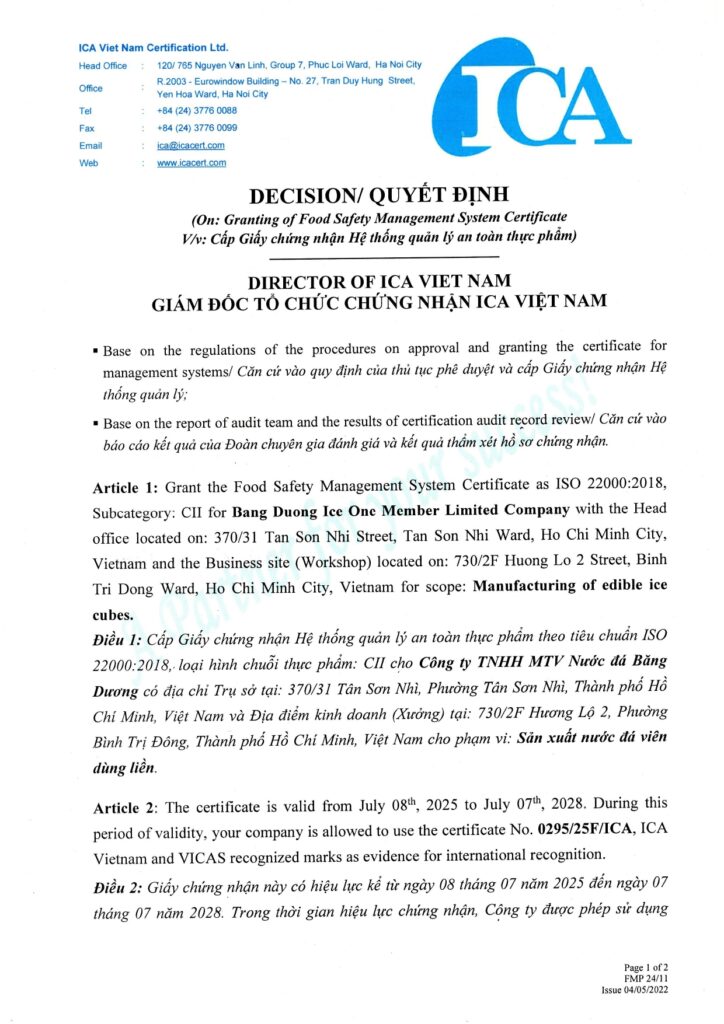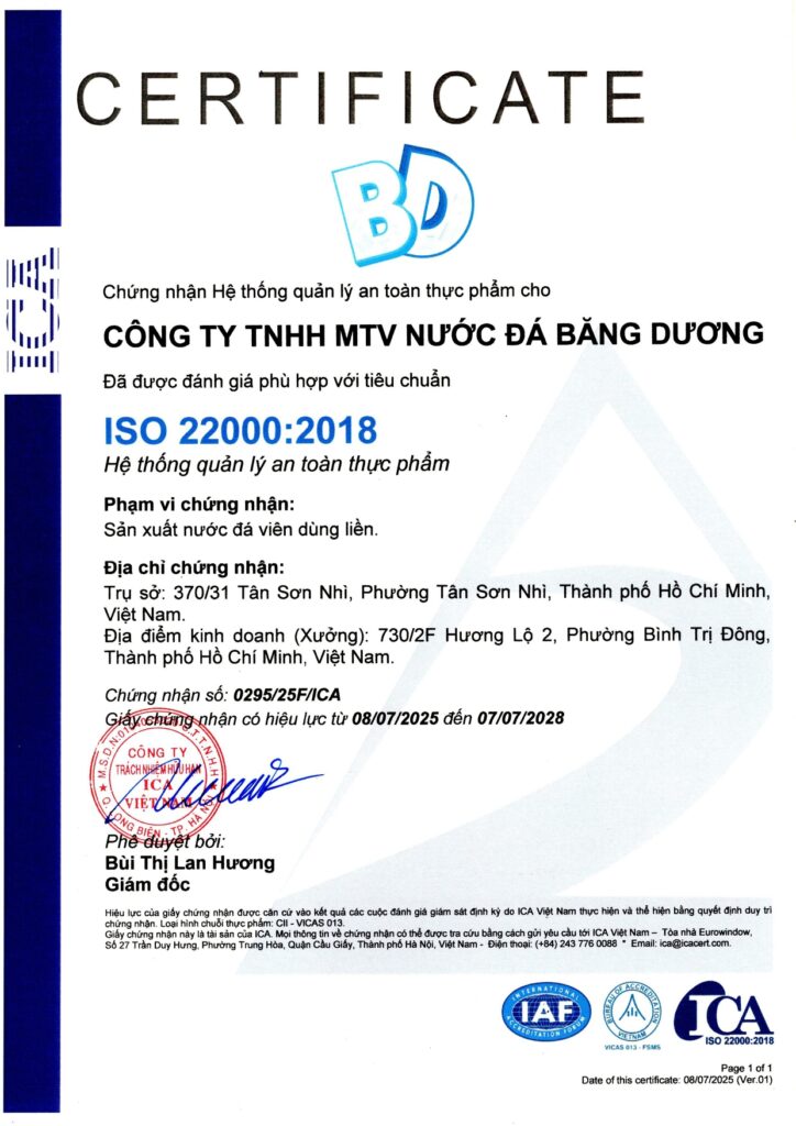 Tự hào là đơn vị uy tín trong lĩnh vực sản xuất nước đá tinh khiết. Với quy trình sản xuất hiện đại và hệ thống kiểm soát chất lượng nghiêm ngặt, chúng tôi cam kết mang đến cho khách hàng sản phẩm nước đá tinh khiết, đảm bảo vệ sinh an toàn thực phẩm.